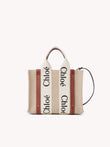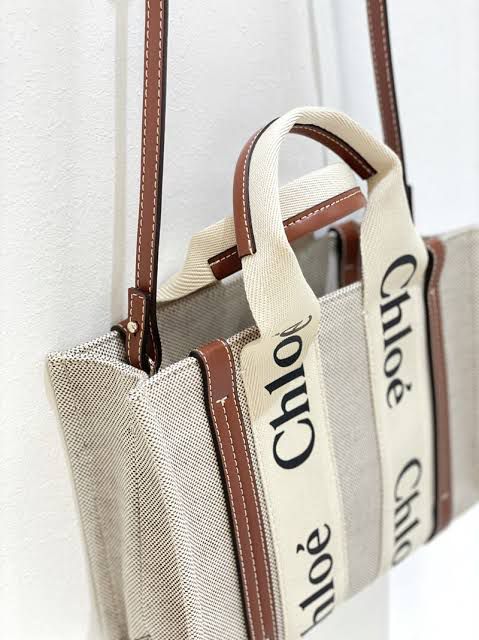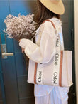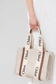 •Tote bag in linen canvas & shiny calfskin with Chloé logo