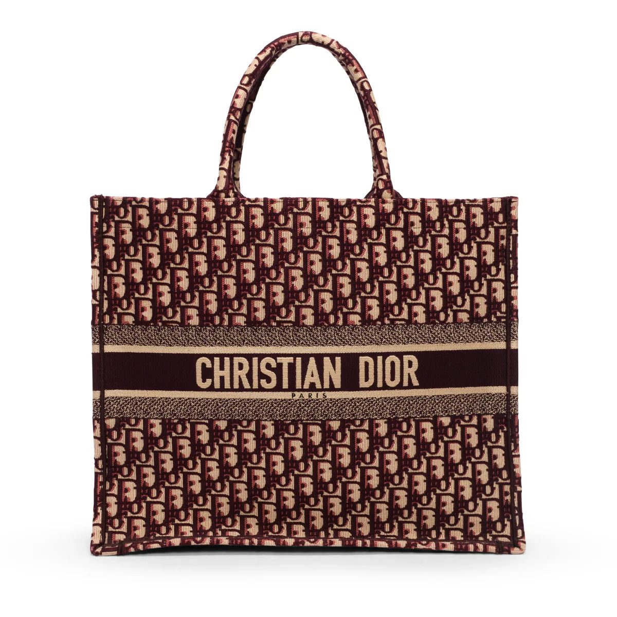 - Design: Iconic Book Tote silhouette with embroidered 'CHRISTIAN DIOR PARIS' band