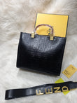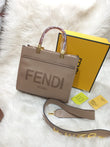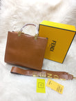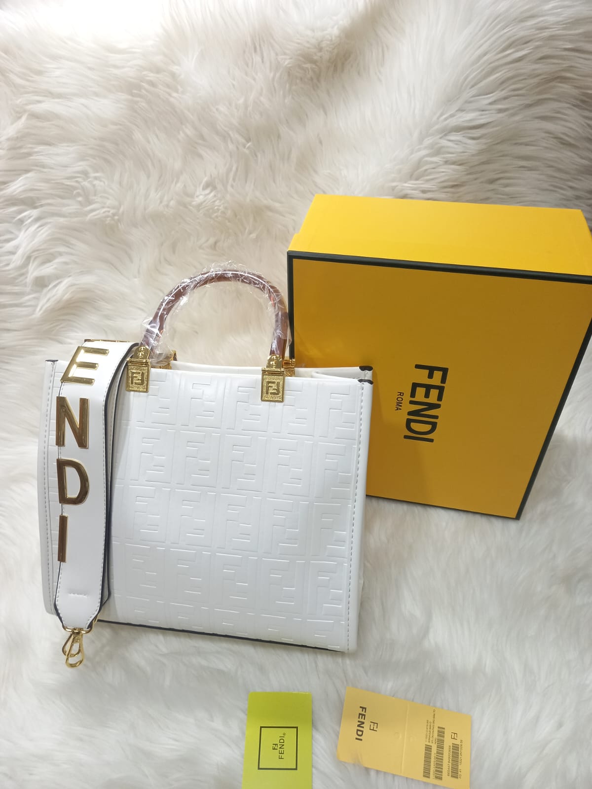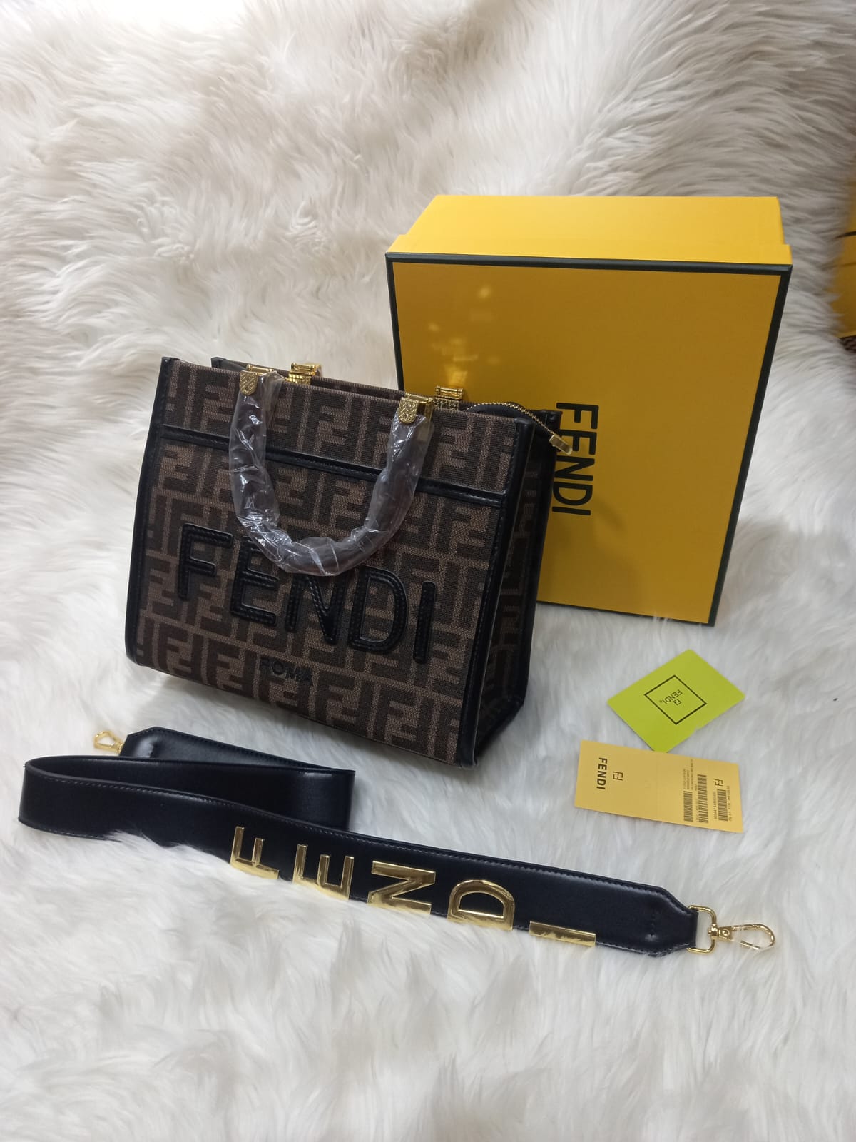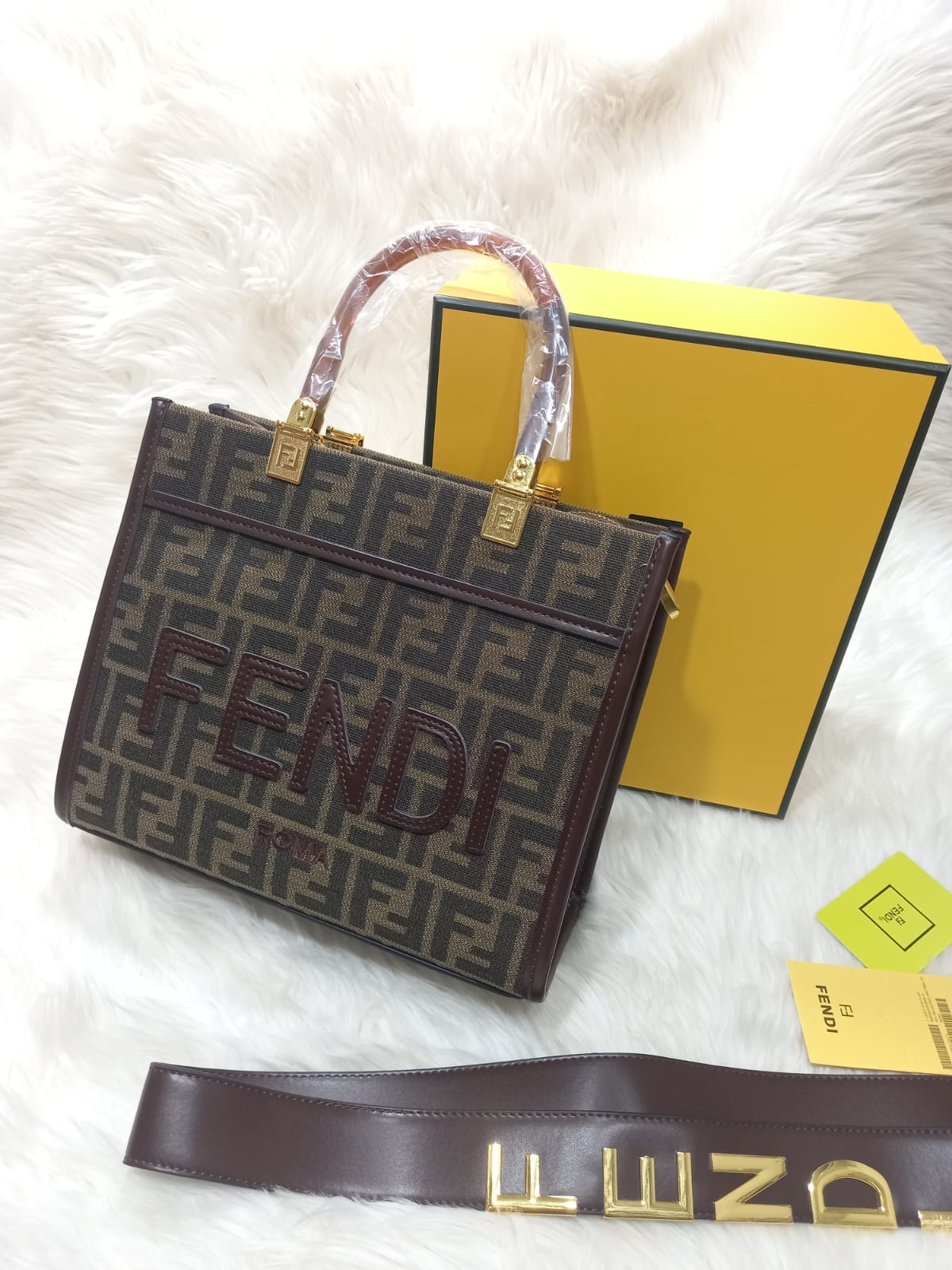 Experience Italian luxury with the Fendi Sunshine Shopper Bag โ a stunning tote that showcases the iconic FF logo pattern with bold lettering and sophisticated craftsmanship.