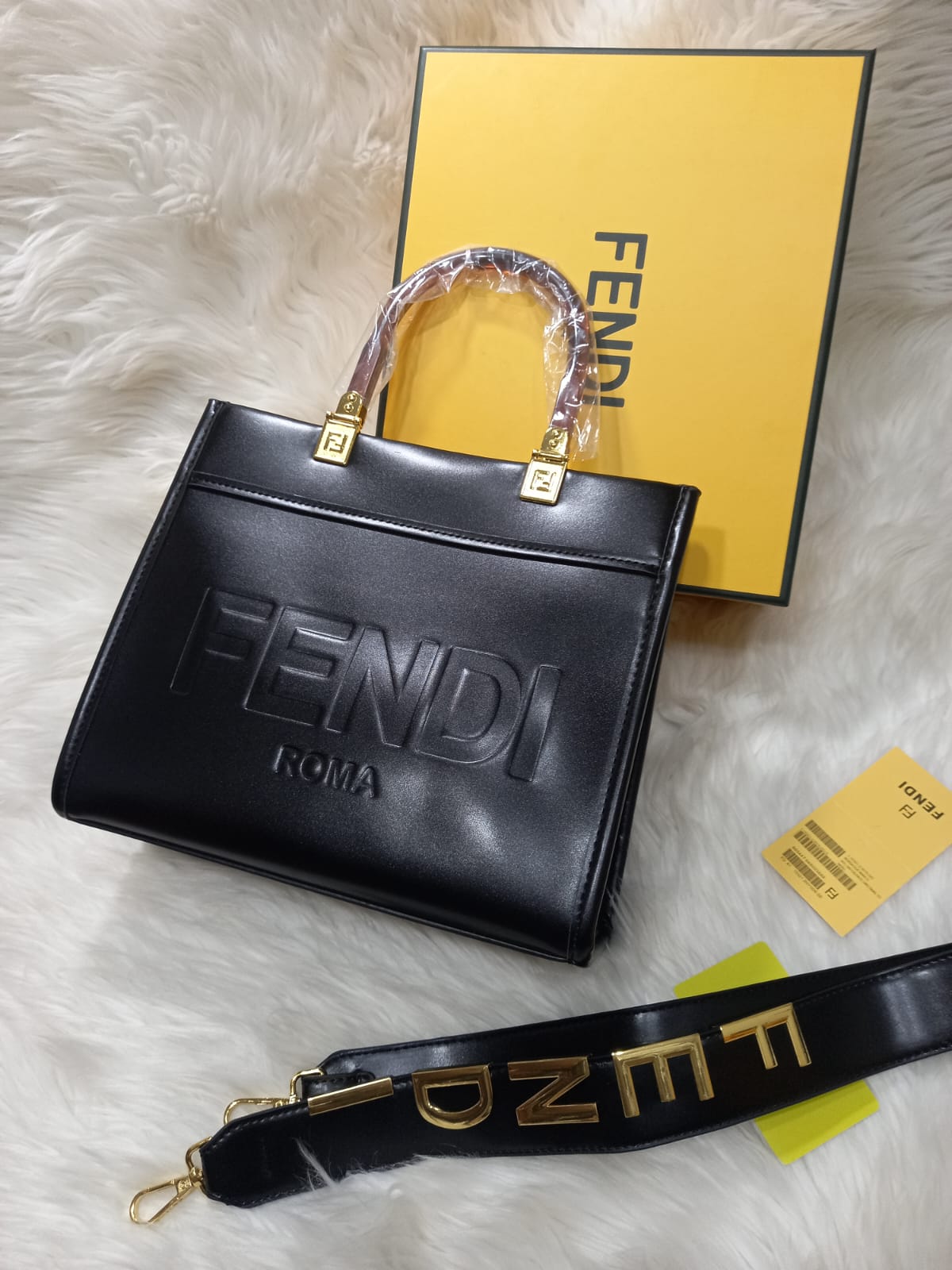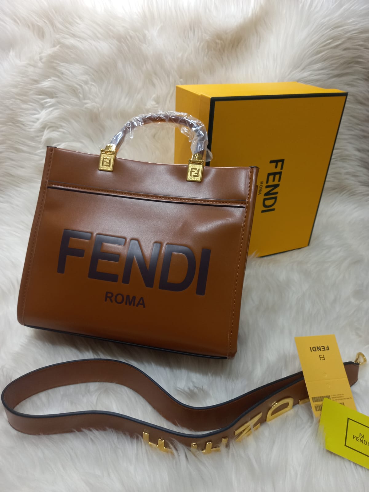 - Design: Bold 'FENDI ROMA' lettering with FF monogram pattern or embossed leather