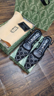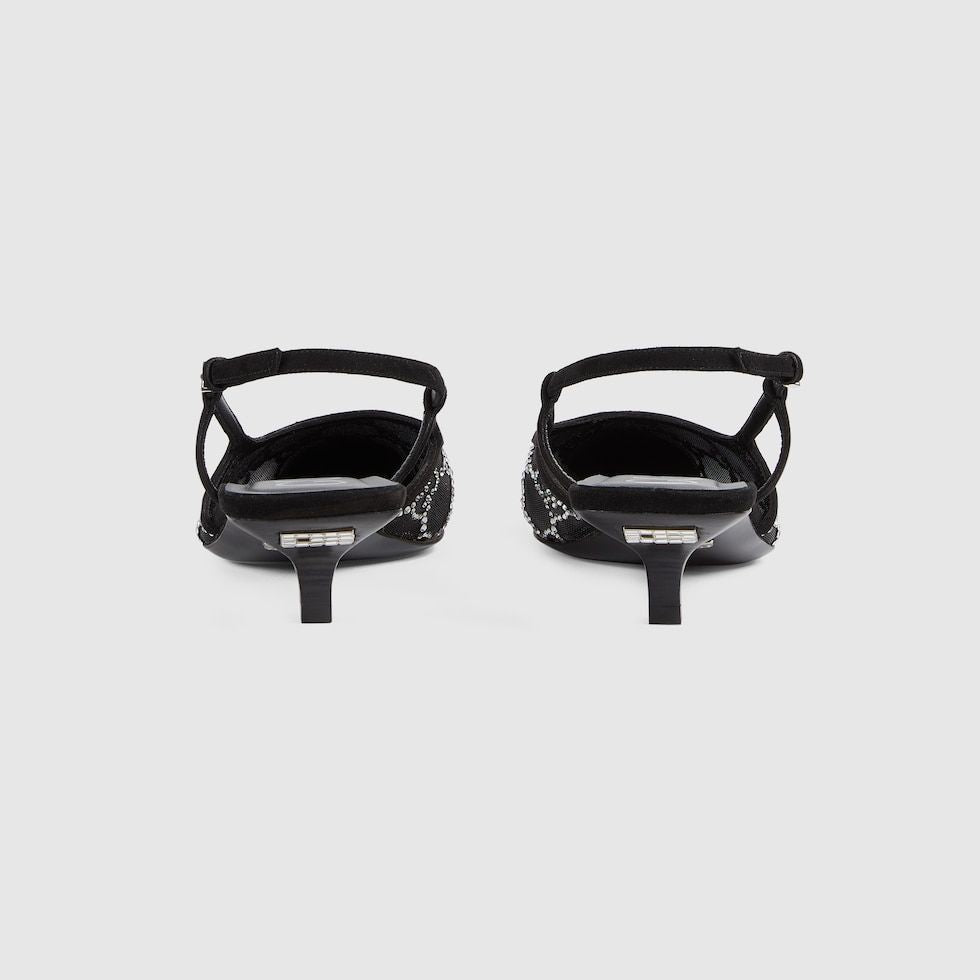 Elevate your style with these exquisite GUCCI women's slingback pumps, featuring a stunning combination of black and beige mesh adorned with crystals.