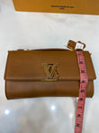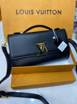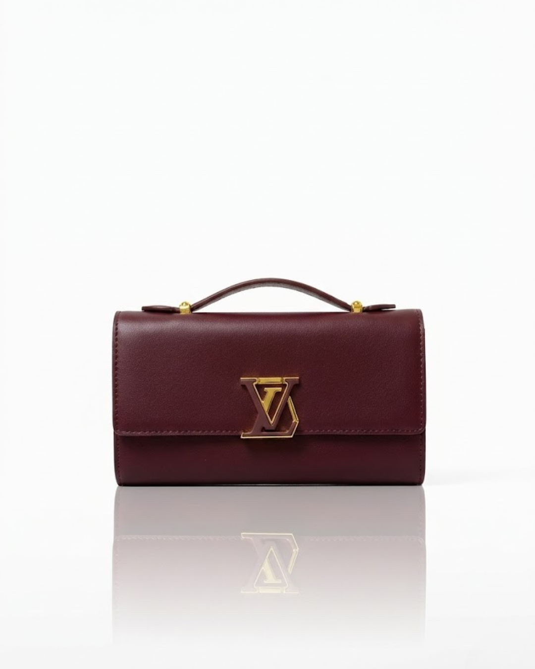 This stunning bag features premium smooth leather in a sophisticated palette of colors, complemented by the signature oversized LV logo in gleaming gold-tone hardware that serves as the focal point. The structured rectangular silhouette maintains its elegant shape while offering a modern, minimalist aesthetic that's perfect for contemporary luxury lovers.