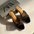 ZARA Mesh Crystal Block Heels - Embellished Quilted Mules